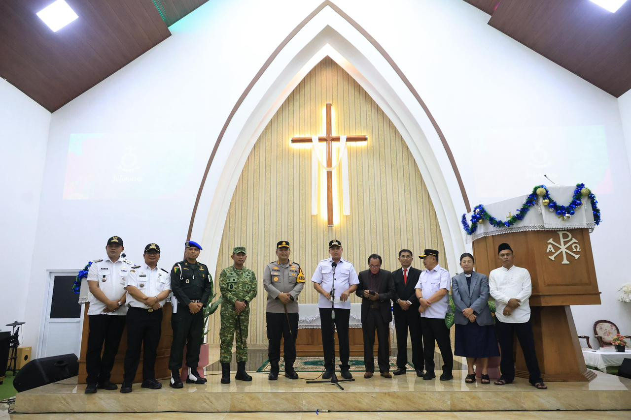Kunjungan Wali Kota Bekasi ke Gereja Tiberias dilakukan bersama unsur Forum Koordinasi Pimpinan Daerah (Forkopimda) sebagai bentuk kehadiran negara dalam memastikan perayaan Natal di Kota Bekasi berlangsung aman, damai, dan penuh rasa kebersamaan.